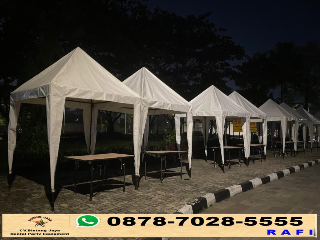 Rental tenda bazar 2x2m plus lampu di Depok. Kami menyediakan layanan rental tenda bazar 2x2m yang ideal untuk berbagai jenis kegiatan, mulai dari pameran produk hingga festival makanan. Tenda kami dirancang untuk memberikan perlindungan dari cuaca, sehingga acara Anda dapat berlangsung dengan nyaman.