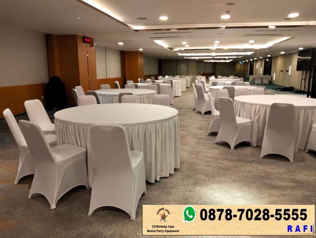 Sewa meja bundar ibm kursi futura cover putih Jakarta. Bintang Jaya adalah penyedia layanan sewa alat event yang berfokus pada kebutuhan acara di Jakarta. Dengan pengalaman bertahun-tahun dalam industri ini, kami menawarkan berbagai pilihan alat yang dapat memenuhi semua jenis acara, mulai dari pernikahan, seminar, hingga konser.