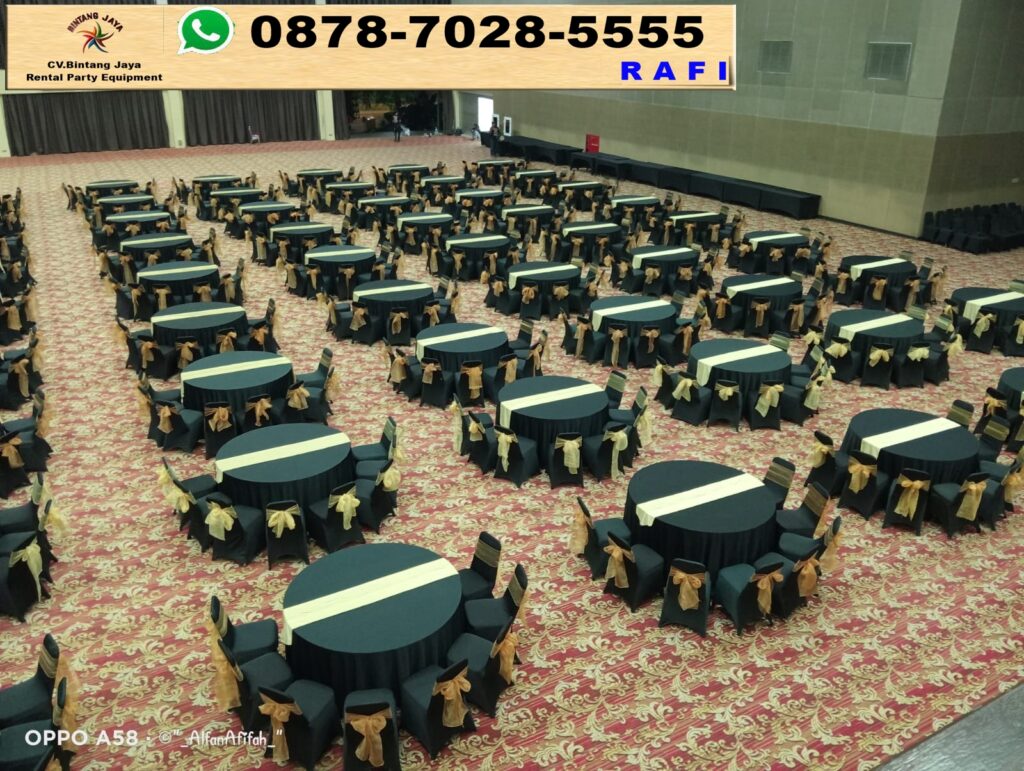 Sewa meja round table event Ecovension Ancol. Bintang Jaya menyediakan berbagai alat pesta, termasuk tenda, kursi, meja, dekorasi, dan perlengkapan audiovisual. Pelanggan dapat memilih sesuai dengan tema dan kebutuhan acara mereka. Semua alat yang disewakan dalam kondisi baik dan terawat.