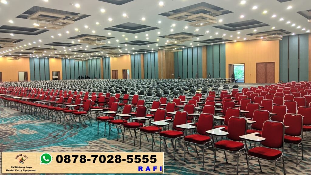 Sewa kursi kuliah merah dan hitam event TMII Gedung Krakatau. Bintang Jaya adalah penyedia layanan sewa kursi kuliah yang terpercaya, khususnya untuk acara-acara besar di seluruh wilayah kota. Kami menawarkan berbagai pilihan kursi kuliah berwarna merah dan hitam yang tidak hanya nyaman, tetapi juga memberikan sentuhan estetika yang menarik untuk setiap event.